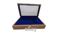 The 1911 Display Wooden Case is a beautifully crafted presentation box designed for a 1912 both Government and Competition will have a perfect fit. Made of glass and wood, this brown case features a single gun slot with a divider for organization. It also is a functional and stylish way to showcase and store your firearm. This case is a perfect accessory for gun enthusiasts looking to display their Colt pistol in a secure and elegant manner.