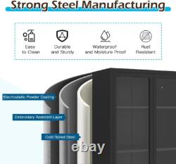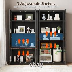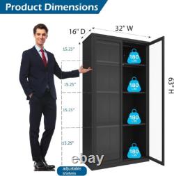 The metal storage cabinet comes with 3 adjustable shelves with 180 LBS for each shelve, providing you with sufficient capacity and adjustability to organize books, collectibles, files and more. Durable Metal Frame for Strength? : the storage display cabinet is made of thickened cold rolled steel which ensures its long lifespan and low maintaince. The classic black color match all decoration style, it could be used at home, office, bedroom and kitchen as you need.