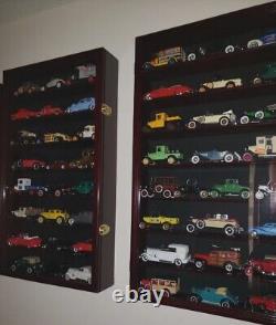 This Cherry display case is the ultimate solution to satisfy that challenge. A great way to showcase your proud collection of cars or trains, this car display case is mirrored background to create a lovely display. This is the perfect solution to display your collection of 1/24 scale (vehicles pictured are not included). Beech solid wood in Cherry FINISH with a mirrored background (Trains, cars shown not included).