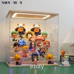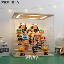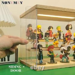 The display shelves has sliding doors, which are easy to open to keep the collection dust-free, reduce sunlight and ultraviolet radiation, and delay plastic aging. Led lights makes your treasured collectibles go from plain on the shelf to being highlighted beautifully. Display case for figures is easy to assemble, you just connect the sides, top and head. The edges are smooth and the acrylic case fitting perfectly against the base. It can be moved at will, not easily knocked over.