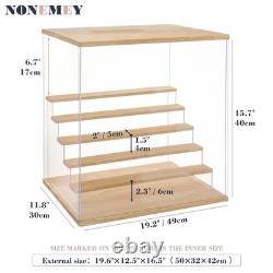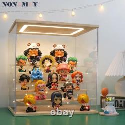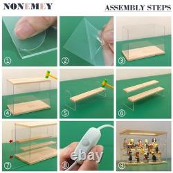 The clear display stand case is suitable for desk, office table, dresser, bedside table to display and organize figurines, lipstick, dolls, jewellery, collectibles, glassware and and any other knickknacks. We provide disposable gloves and clean cloth to prevent fingerprints and dust and the acrylic display case is equipped with light. You need to tear the layers protective film on the acrylic and the light surface before you start to the assemble.