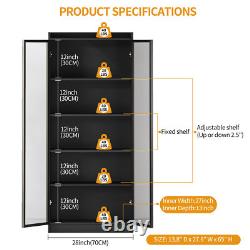 The light will automatically turn on when approaching, and automatically turn off when leaving, making it easy to find what you need in the dark while also conserving energy ·[Ample Storage Space] Measuring 13.78' D x 27.56' W x 64.96' H, the Dystler cabinet comes with 2 adjustable shelves and 2 fixed shelves, giving you plenty of room to organise your books, put your toys away, store your wine and food and more. ·[Concise & Beautiful Design] The Smoked Black color acrylic door design of the storage organizer allows you to clearly see your favorite antiques, books, and toys, and it complements any family style.