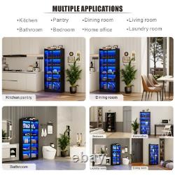 It perfectly blends with your elegant home decoration and adds highlights to your room ·[High-Quality Wooden Material] Our display case is crafted from premium-quality wood, ensuring durability and longevity. Lt is also waterproof and easyto clean, so you don't have to worry about water splashes or stains. A simplewipe-down keeps it clean and hassle-free [Easy Assembly] The cabinet with doors comes with clear assemblyinstructions, making it easy for anyone to assemble, even if you're not a DlYexpert. It's perfect for use in kitchens, dining rooms, bedrooms, bedrooms, living rooms, offices, etc. Offering versatile storage solutions for your needs. Make life more convenient and refined. Tall Display Cabinet with Acrylic Doors. This storage cabinet provides you with enough display space & easily stores a variety of collections, tableware, snacks, collectibles, goods, dishes, books, bottles, cookware, and small appliances. It is ideal for kitchen, dining room, study, gaming room, living room & office. Wooden Curio Cabinet with Dimmable 3-Color LED Light & Adjustable Brightness. Modern Storage Cabinet with Intelligent 3-Meters Human Body Induction. 5 Tiers Display Cabinet - Keep All Your Items Well Organized. The hinges are constructed from heavy duty metal material, ensuring its durability. And it's silent enough for daily use. Acrylic Door & Top Storage. The pantry storage cabinet with transparent acrylic doors is sleek and easy to clean, and extra top area can store more items. The tall cabinet comes with 4 adjustable shelves, which can be removed or adjusted to suit the needs of storing large sized items. The black metal handles will add elegant charm to your living room or kitchen. We are also happy to offer personalized discounts for larger order. We will reply all the message with 48 hours.