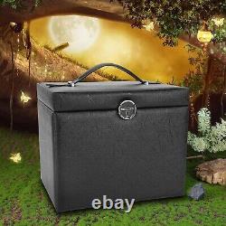 L - 10.5" W - 7.5" H - 8.75. Material:Our jewelry box organizer built with high quality PU leather outside, soft elegant velvet inside, detailed with faux-suede-lined compartments, attractive in appearance, protect your jewelry from dust and scratches. What can be placed inside: 2 side doors for necklaces, and many storage compartments for rings and accessories, this. Large jewelry case rescues you from taking 20 minutes to untangle what you want to wear. Mini case for your next trip: This jewelry box has a mini travel case, which is perfect for applying makeup on the go; it's petite enough that you can pop it in your bag for a weekend at the beach.Two necklaces hanging wings with 8 hooks and 2 storage bags, to keep your necklaces or long earrings from tangling. Gift:With elegant appearance and considerate design our display box for jewelry are pefect gift for birthday, Christmas, wedding day, Valentine's Day, Mother's day, father's day, Anniversary Day. 26.75 x 19 x 22.25 Centimeters.