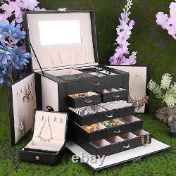 Limuta Jewelry Box For Women Girls Women Girls 5-Layer Large Box With Mirror and Lock, Portable Travel Case, for Rings, Bracelets, Earrings, Necklaces, Velvet Lining, mothers day gifts. Dimentions: L - 10.5" W - 7.5" H - 8.75.