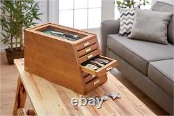 Collector's Cabinet Display Case for Collectibles, Wood 7-Drawer Storage Organizer Oak. DISPLAY, SECURE, AND STORE - Display, secure, and store your precious collectible items in this collector's cabinet display case. Use it to store keepsakes like coins, knives, watches, jewelry, badges, pins, and more.