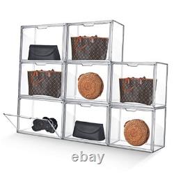 10 Pack Purse Storage Organizer for Closet, Clear Acrylic Display Case for Handbag Organizer with Magnetic Door for Collectibles Hats Shoes Wallet Book. Enough Space: t comes with 10 pieces of clear acrylic boxes, each of which is approx. 36 x 27 x 22 cm/ 14.2 x 10.6 x 8.7 inches, large enough for placing your handbags, purses, wallets and more; It is advisable that you check the size before ordering Front Door and Magnetic Door Design: each purse display case adopts magnetic door design, so you can use one hand to easily open and close from front door without taking the top box off; When you receive, follow the pictures in the product page, then it's easy to assemble Sturdy Material: these purse organizers for closet are made of quality acrylic, with fine workmanship, smooth without burrs, not easy to break, waterproof and strong, which can serve you for a long time Stable and Stackable: t is a slot design on this handbag storage organizer, allowing you to have a stacking decoration and maximizing your storage space; So you can use them alone or together to create a storage system that works for you Wide Applications: the acrylic boxes for display not only can store your wallets, clutches, handbags and purses, but also can display shoes, cosmetics, toys, books, figures, collectibles and more, ideal for items displayed in the corner or against the wall or in the closet.