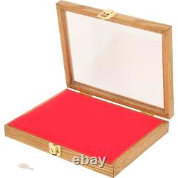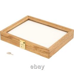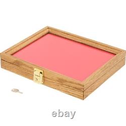 Riker Display Case - Oak Finish, 12x9.5x2, Red Foam. This is a new Oak Glass Top Display Case with Red Foam. Dimensions 12" x 9.5" x 2.