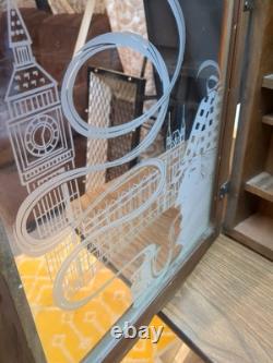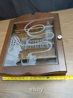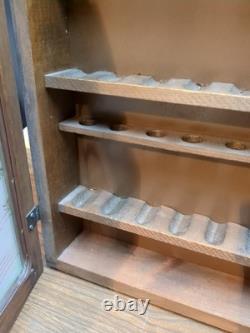 Sherlock Holmes Wooden Tobacco Pipe Display Case Storage Cabinet with Etched Glass
